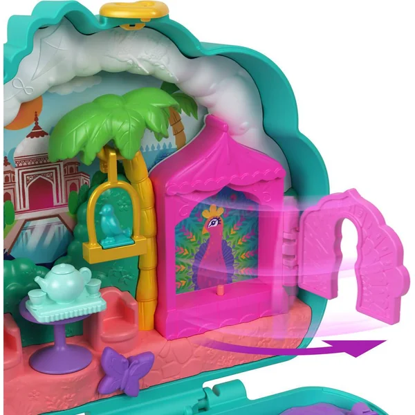 Le paon fait la roue avec ses plumes multicolores. Il abrite un jardin peuplé d’animaux exotiques. 12 accessoires et 2 mini-figurines sont inclus.
