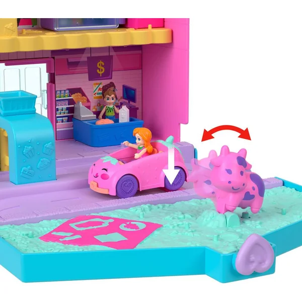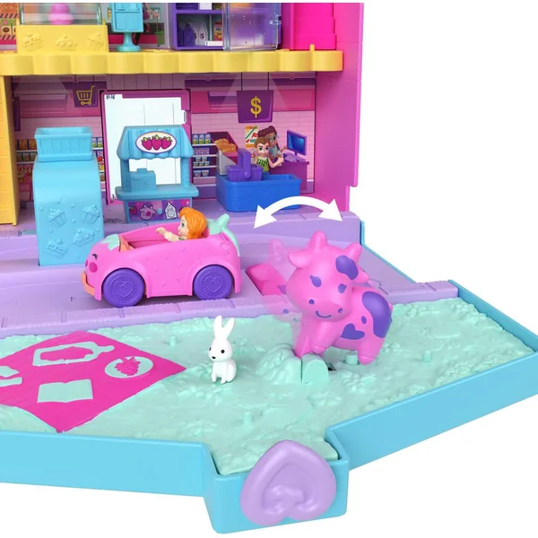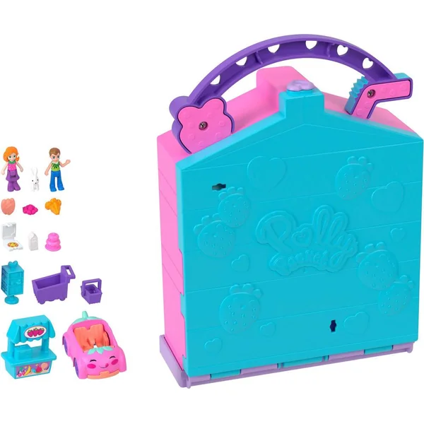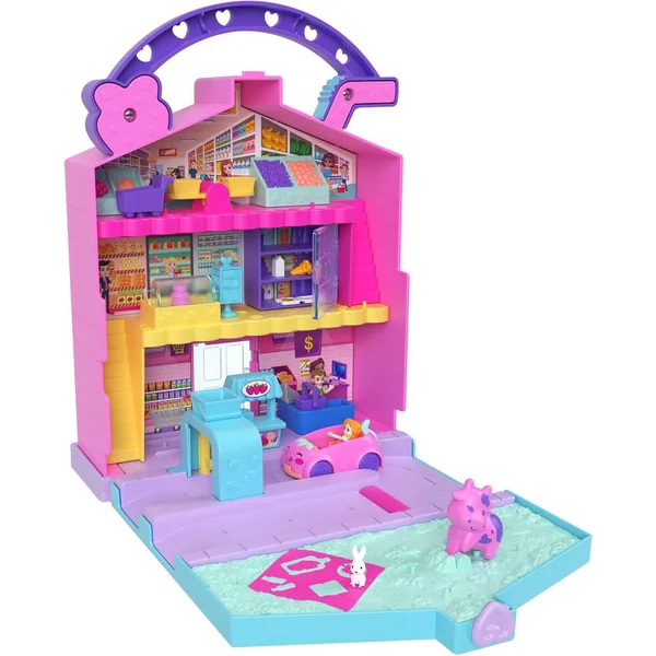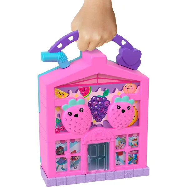 Cette brique de lait fraise est un magasin de 2 étages avec des surprises, des espaces de jeu, 2 figurines, 11 accessoires, 1 poignée et 1 véhicule.