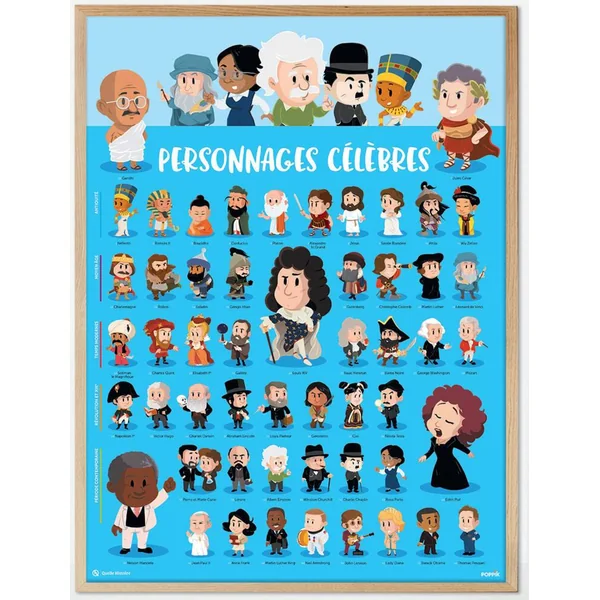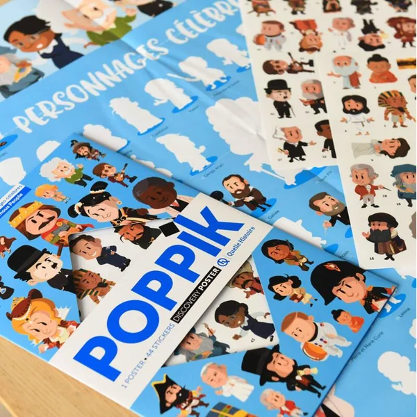 1 Grand poster de 70 cm sur 50 cm à compléter avec des stickers repositionnables. Découvre les personnages célèbres.