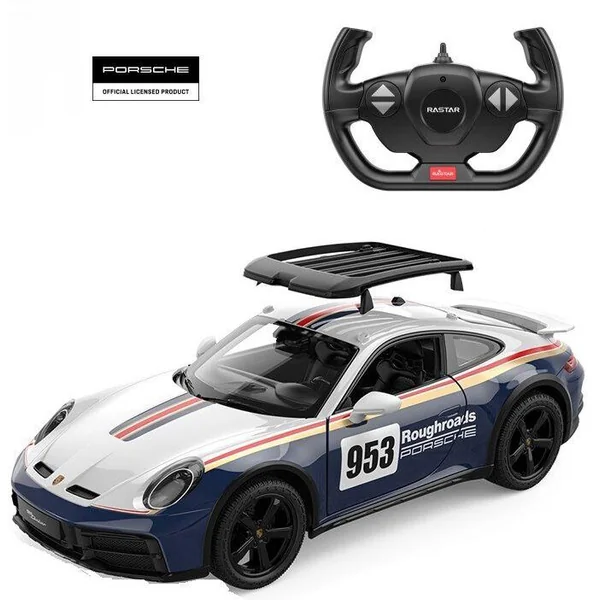 Voiture radiocommandée sous licence à l’échelle 1/14 de la Porsche 911 Dakar performance . Représentation fidèle de la carrosserie en plastique injecté. Pneus en caoutchouc synthétique. Modèle entièrement pilotable avec une radiocommande 2,4 Ghz alimentée avec 7 piles LR06 non fournies.