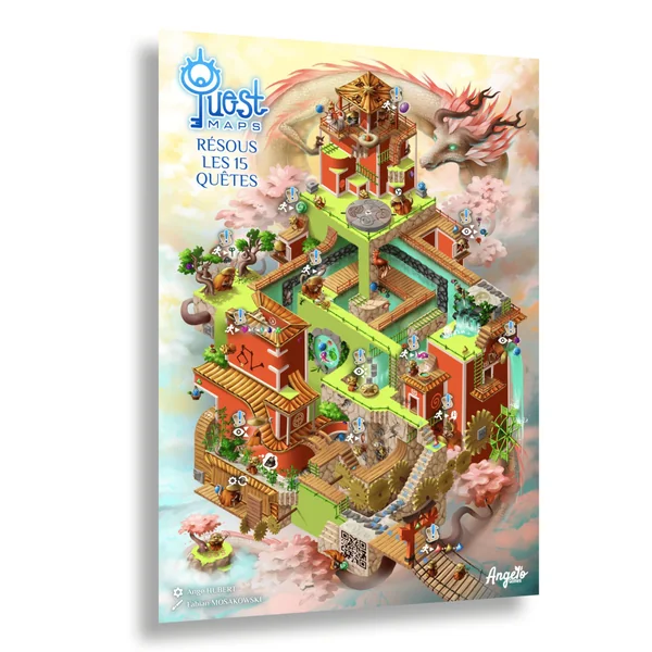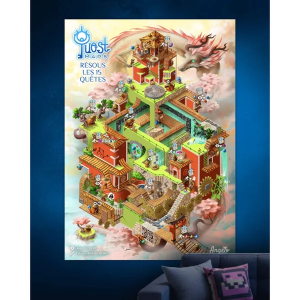 Chaque Quest Map est une illustration d’un univers unique et détaillée. Mais regarde de plus près : le poster est rempli d’activités visuelles à résoudre ! Plonge toi dans un temple asiatique de dragons niché dans les nuages.