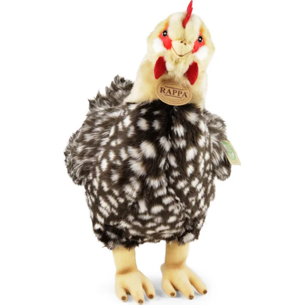 La poule en peluche de 33 cm est fabriquée en peluche de haute qualité et fait partie de la collection exclusive de jouets en peluche RAPPA. Elle est accompagnée d’un œuf en tissu, qui est attaché à la poule par un cordon.