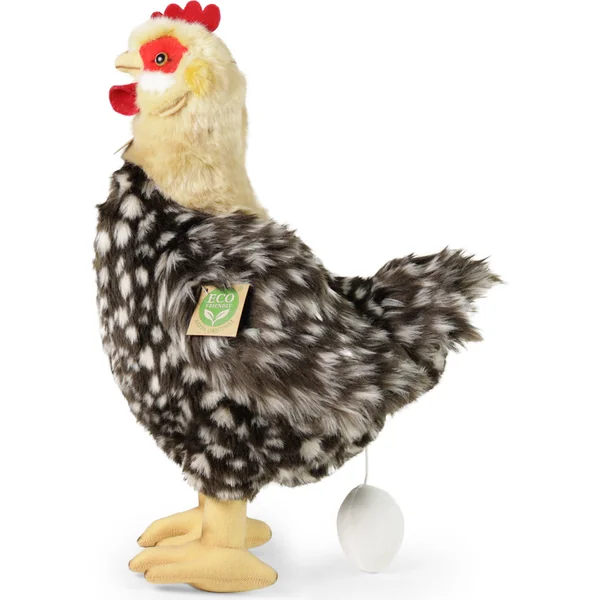 Poule en peluche tachetée debout 33 cm avec œuf ECO-FRIENDLY