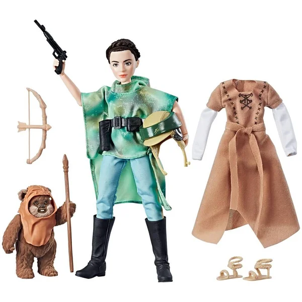 La poupée mannequin de Leia articulée , héroïne des de la saga Star Wars, et un Ewok pour créer ses propres aventures. 2 tenues pour Leia, tirées de l’épisode VI « Le retour du Jedi » – 1 Ewok avec de la fourrure – 1 Poupée articulée.