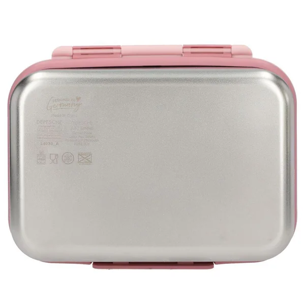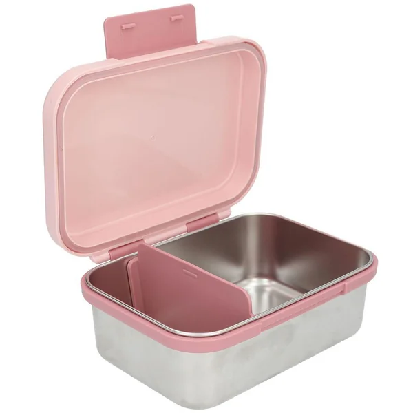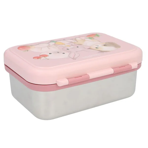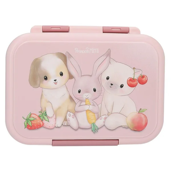 Princess Mimi Boîte à déjeuner en acier inoxydableCette boîte à goûter en acier inoxydable est dotée d’un couvercle en plastique rose imprimé d’un joli motif représentant trois animaux : un chien, un lapin et un chat. Séparateur amovible à l’intérieur. Le couvercle est muni d’un joint en silicone qui empêche les fuites et conserve la fraîcheur des aliments. Contenance : 1 litre ; dimensions : 17,3 x 13,3 x 6,9 cm ; Matière de la boîte : acier inoxydable ; matière du couvercle : polypropylène (incassable, inodore et sans goût, sans BPA et sans plastifiants); Matière du joint : silicone-