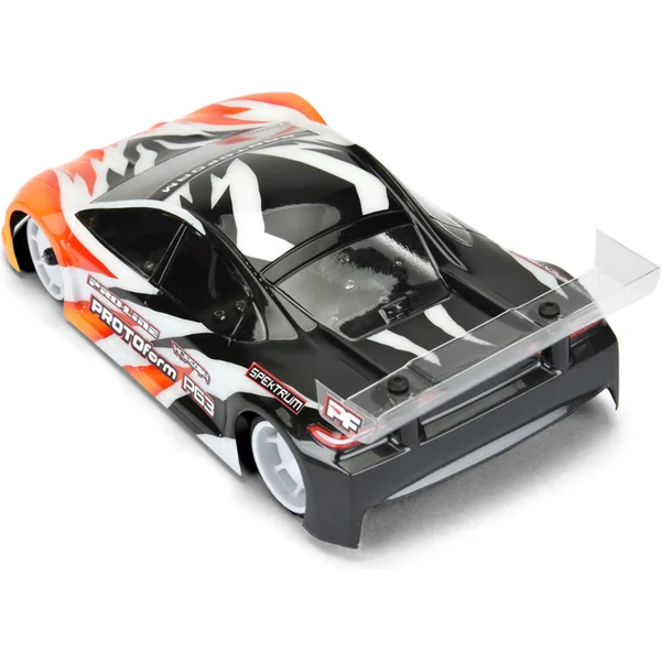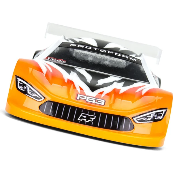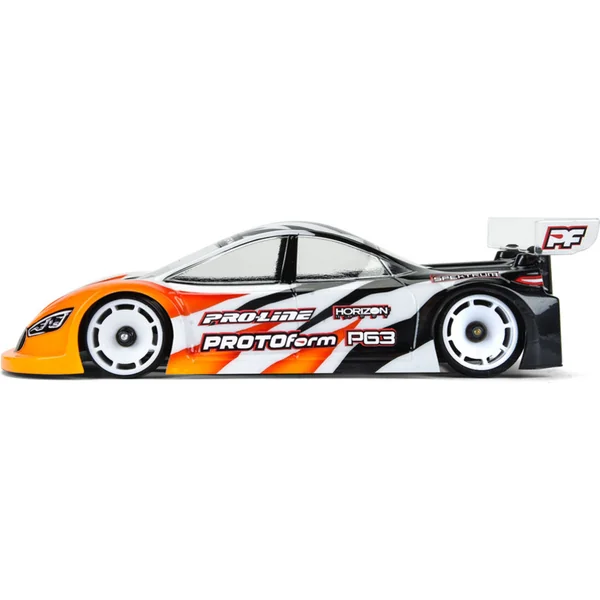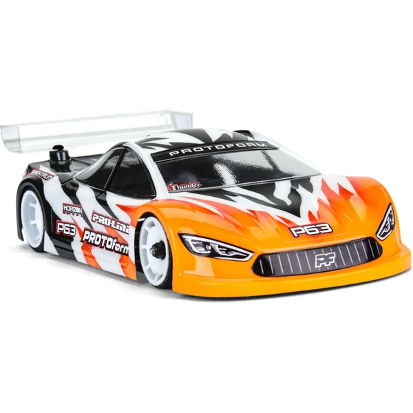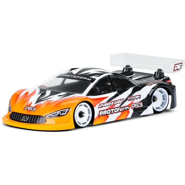 La carrosserie PROTOform 1:28 P63 (empattement 98 mm) : Mini-Z est la dernière solution aérodynamique de PROTOform pour les courses de véhicules électriques de tourisme hautement compétitifs. Cette carrosserie aérodynamique avec une ultra haute pression d’appui et un centre de gravité super bas a été conçue pour répondre aux classes de course Super Stock et Modified 1:28. Elle est fabriquée en polycarbonate léger et hautement résistant. Le paquet comprend des vis pour fixer l’aileron.