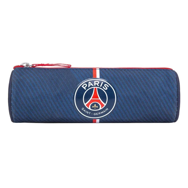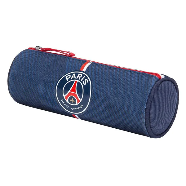 Trousse ronde PSG marine, Matière polyester, Dimension (cm) : 21,5×7,3×7,3. 1 compartiment.