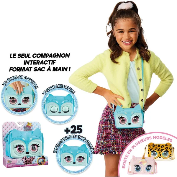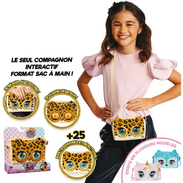 Un sac compagnon animé trop mignon à emporter partout. Ce sac est interactif : il cligne des yeux et interagit avec l’enfant. Prêt à porter et pratique pour ranger ses objets préférés, il dispose de sa propre personnalité. 3 modes de jeu. Interactions : il réagit au toucher en clignant des yeux, en faisant les yeux doux ou en ronronnant. Questions : il répond aux questions en clignant des yeux et en faisait des sons amusants. Chansons : il se met à chanter quand on le balade (capteur de mouvements intégré). Plus de 25 sons et réactions. Avec une sangle ajustable. Matière : faux cuir granulé. Taille du sac : environ 15 cm de long et 10 cm de haut. Existe en plusieurs modèles : licorne ou léopard ou renard.
