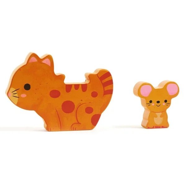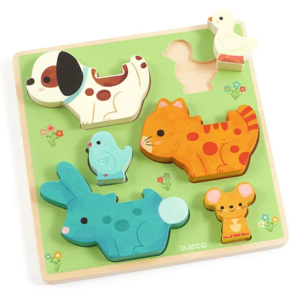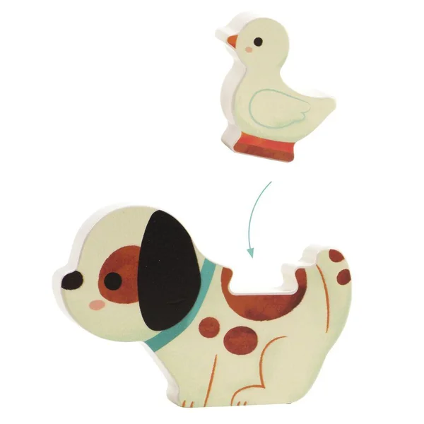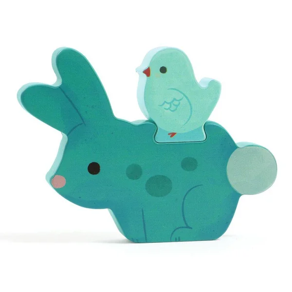 Puzz ET Play est un puzzle en bois facile à assembler et un jeu de construction. Les deux pièces de chaque ensemble s’emboîtent pour former des paires d’amis. L’enfant peut vérifier s’il a trouvé la bonne paire grâce aux associations de couleurs.