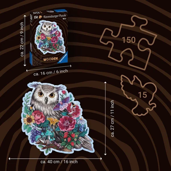 Découvrez une nouvelle façon d’assembler nos puzzles grâce aux pièces de bois de haute qualité, robustes et naturelles découpées avec précision au laser. Nos puzzles en bois vous permettront une expérience d’assemblage unique au cœur d’un univers haut en couleurs sur le thème d’un hibou floral. Les 150 pièces de ce puzzle comprennent 15 petites figurines en bois (=whimsies) conçues avec amour en lien avec le thème du puzzle.Les puzzles Ravensburger sont synonymes de plaisir du puzzle tout en garantissant une qualité premium, avec une grande exigence quant aux matériaux, aux motifs représentés et au design choisi. Cette passion pour la qualité et l’amour du détail ainsi qu’un immense choix en terme de motifs, de formats et de nombres de pièces rendent les puzzles Ravensburger uniques et garantissent une expérience de puzzle inoubliable. Du débutant au plus expérimenté : chaque amateur de puzzles trouvera son puzzle parfait ! Contenu: 1 puzzle de 150 pièces en bois, 1 sachet kraft