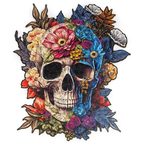 Puzzle de crâne fantastique en bois de 232 pièces, comprend une boite bois et un support.