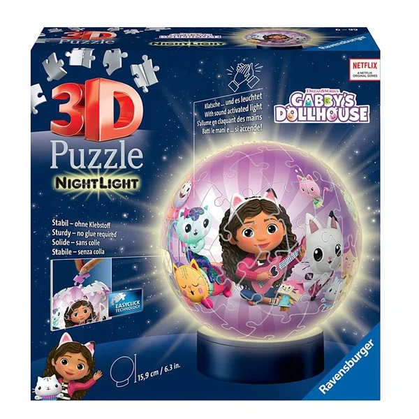 Une fois monté, le puzzle 3D reste bien stable et n’a pas besoin d’être collé. Avec son socle lumineux, il se transforme en véritable lampe qui s’allume et s’éteint lorsqu’on claque des mains !