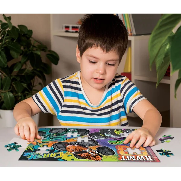Puzzle maxi floor 60 pièces Hot Wheels, parfait pour les enfants amateurs de véhicules et d’action.