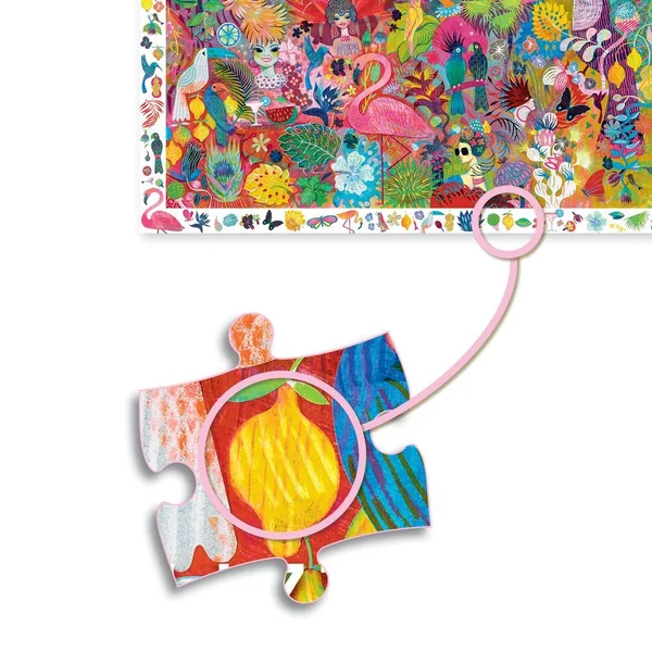 Tout autour d’une grande image, des dizaines de sujets ou d’objets à découvrir ! Commence par assembler le puzzle, puis amuse-toi à retrouver les éléments de la frise dans l’image centrale.