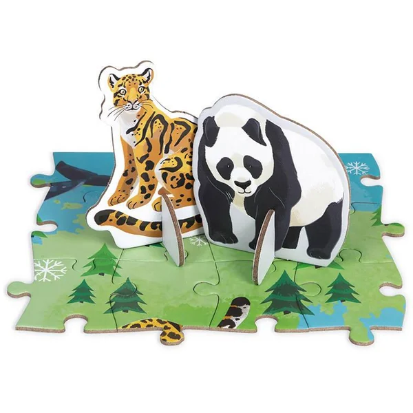 Puzzle carton géant de 350 pièces sur le thème des espèces prioritaires de l’association WWF. Puzzle accompagné d’un livret éducatif pour partir à la rencontre des espèces en danger et comprendre les actions menées par WWF pour les protéger. 44 animaux en carton à assembler et à placer sur le puzzle. Le nom des espèces est indiqué au dos de chaque figurine. Poster inclus. Carton certifié FSC et peinture à l’eau. Janod soutient les efforts du WWF pour protéger l’environnement et la biodiversité grâce à une nouvelle gamme de jouets fabriqués à partir de matériaux plus durables. À travers cette gamme, nous visons à inspirer et à permettre à la jeune génération de se mobiliser pour la faune et la nature.