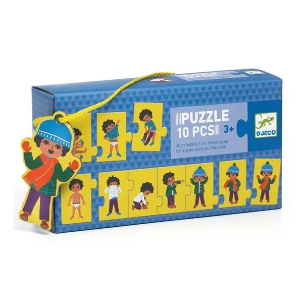 Je m’habille est un puzzle frise de 10 pièces à remettre dans l’ordre pour apprendre les étapes de l’habillement.