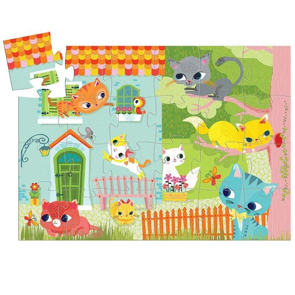 Pachat et ses amis est un adorable puzzle de 24 pièces qui raconte une belle histoire sur la vie trépidante des chatons !