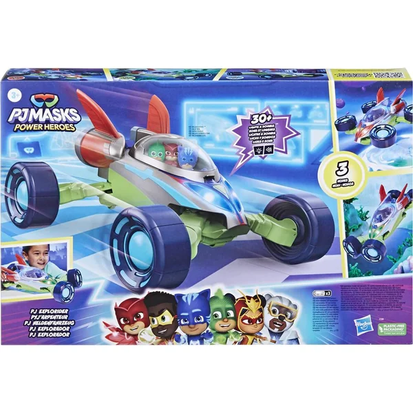 Les enfants imaginent un monde d’aventures avec le véhicule convertible Pyj’Arpenteur Pyjamasques Le Cercle des Héros ! Avec 3 modes uniques, plus de 35 sons et lumières et de la place pour assoir 6 figurines, cet incroyable véhicule Pyjamasques inspiré du dessin animé est prêt à foncer dans l’action. Les enfants peuvent ajuster les roues et les essieux du véhicule pour le faire passer en mode terre, air ou mer ; de petites roues sous le véhicule permettent de le faire rouler dans tous les modes. Chaque mode inclut des sons et lumières uniques associés aux différents personnages pour inventer encore plus d’histoires. Inclut une figurine Yoyo de 7,5 cm.