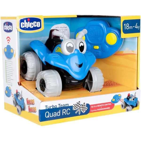 Une première radiocommandée sous forme de quad. Elle est utilisable dès 18 mois grâce à sa télécommande à 2 boutons, pour avnacer et tourner en reculant.