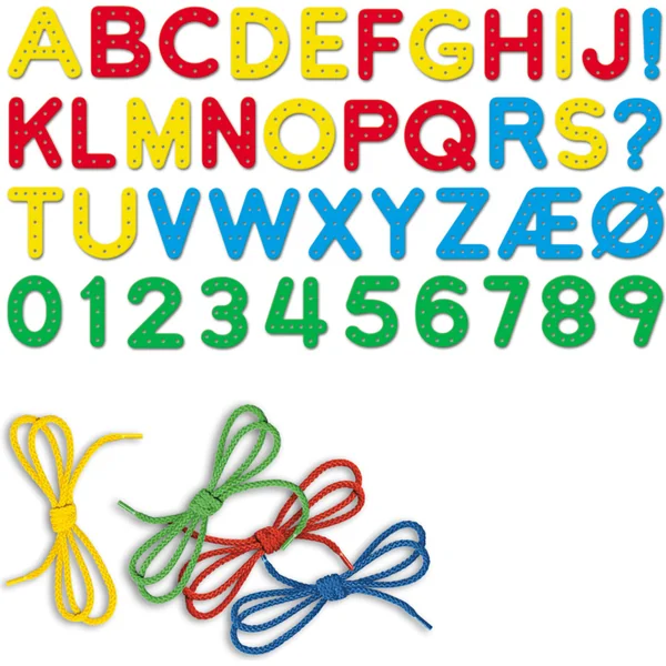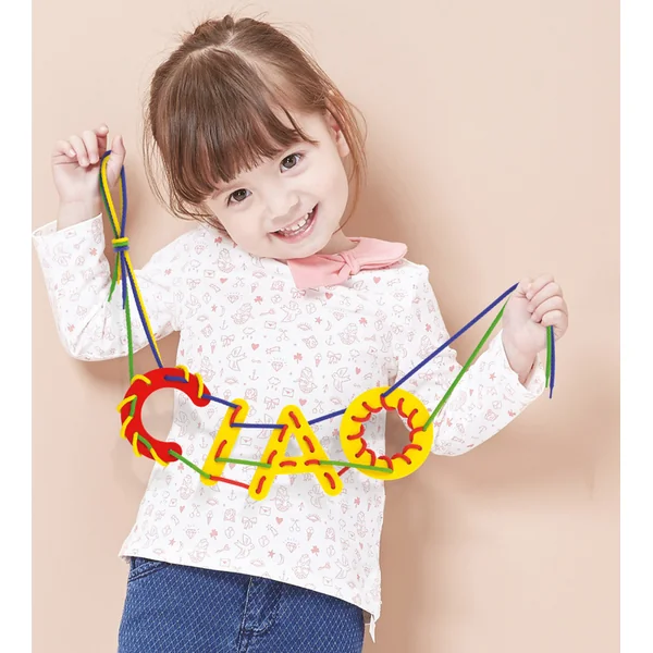 • les enfants enfilent des lettres et des chiffres avec des cordons colorés