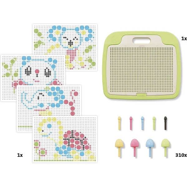 Jeu classique de mosaïque à picots qui amuse et engage les enfants du monde entier. Plateau de jeu et étui de rangement pour un rangement facile après le jeu. Fabriqué à partir de matériaux recyclés dans la série PLAYECO+. Convient aux enfants à partir de 3 ans.