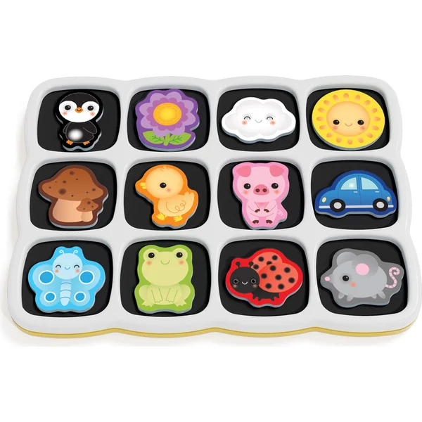 Un jeu de logique amusant et une activité créative libre en un pour les tout-petits et les jeunes enfants à partir de 18 mois. D’un côté du tableau magnétique, il y a 12 aimants avec des images d’animaux et d’objets, spécialement conçus pour une reconnaissance et une manipulation faciles. De l’autre côté, le tableau se transforme en un fond coloré où les enfants peuvent disposer librement les aimants et créer leurs propres histoires. Des dessins simples combinés à des motifs colorés de qualité stimulent l’imagination des enfants et la pensée logique.