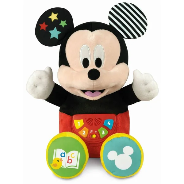 Mickey deviendra un ami inséparable de votre enfant : cette peluche conteuse l’accompagnera à tout moment de la journée. Comprend quatre livres, chacun pour un moment différent de la journée : réveil, repas, jeu et dodo. En appuyant sur les boutons situés sur le ventre de Mickey, l’enfant peut écouter les histoires et suivre les illustrations sur les livres. Les histoires utilisent un langage adapté aux tout-petits, avec des situations de la vie quotidienne. La peluche peut être lavée en machine.