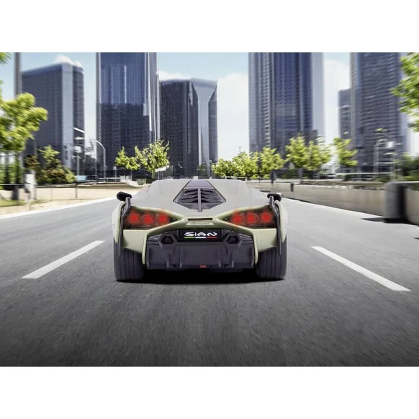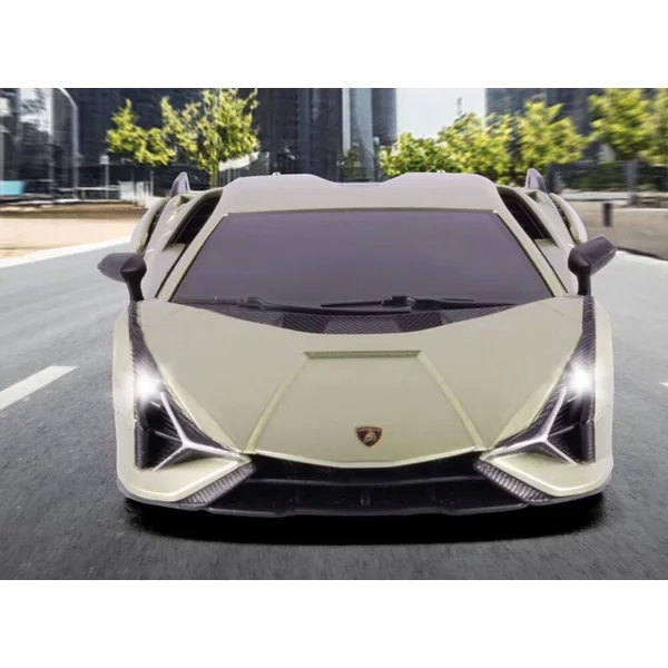 Voiture RC à l’échelle 1:24. Réplique détaillée de la voiture de sport Lamborghini Sián (Sous licence officielle). Télécommande 2,4 GHz, adaptée aux gauchers et aux droitiers. Éclairage avant à LED. Vitesse : 10 km/h. Longueur : 205 mm. 5 piles de 1,5 V (AA) nécessaires / non incluses.