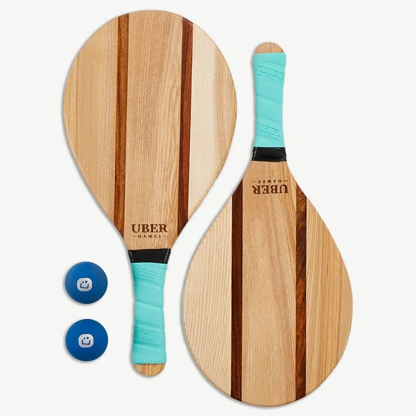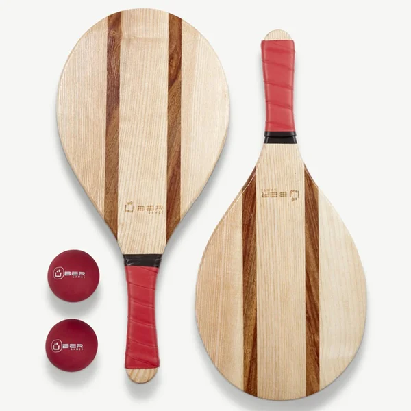 - 2x raquettes en bois (palissandre et frêne blanc) 43 x 20 cm (manches avec Grip)