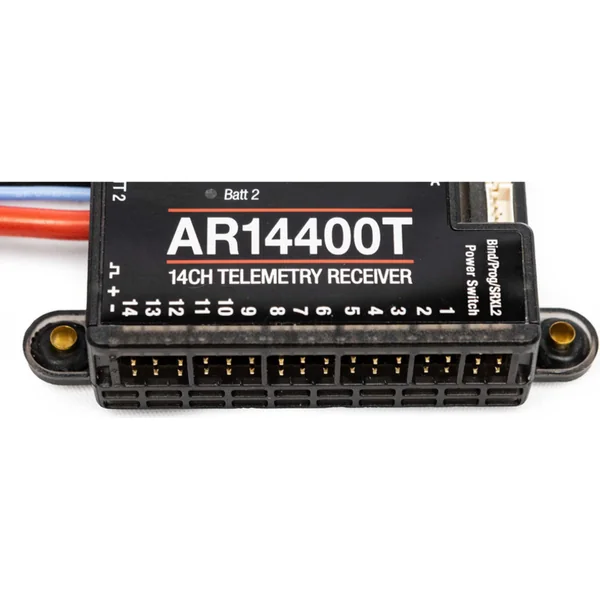 Spektrum ™ AR14400T PowerSafe ™ est un récepteur 14 canaux riche en fonctionnalités avec télémétrie intégrée à pleine portée. Le récepteur est conçu pour de grands modèles avec plusieurs servos et une consommation de courant élevée. Le récepteur dispose d’une alimentation redondante duale avec des câbles 13AWG et des connecteurs IC3. Cela permet d’alimenter en toute sécurité des systèmes à haute intensité directement à partir du récepteur.
