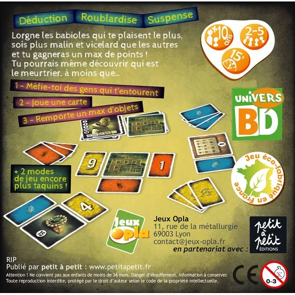 Méfie-toi des gens qui t’entourent – Joue une carte – Remporte un max d’objets – Nombre de joueurs 2 à 5 – Durée de la partie 15 à 30 minutes.