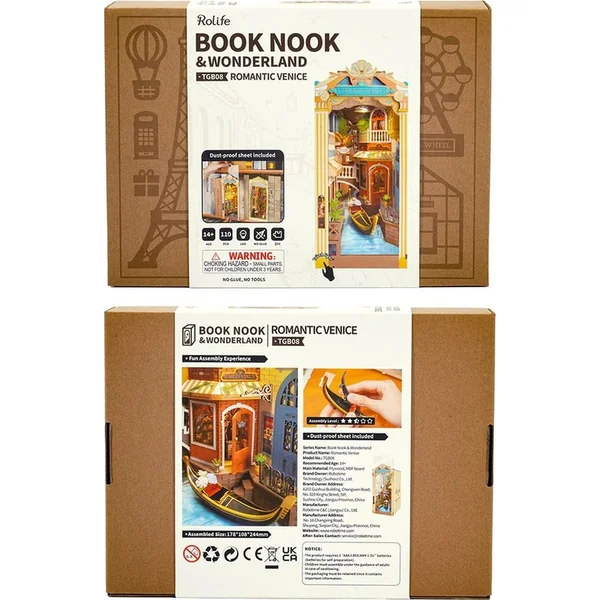Le support de livre a été conçu avec une telle précision et authenticité qu’il capture la tranquillité de la ville dans un petit coin de lecture. Le canal vénitien est magnifiquement représenté à l’aide de plastique transparent, ce qui rend l’effet de l’eau plus réaliste. Et cette vue magnifique est encore accentuée par l’éclairage LED. Ce support de livre est protégé contre la poussière et les salissures par un film transparent à l’avant et sur le dessus. Les pièces à clipser facilitent l’identification lors de l’assemblage.