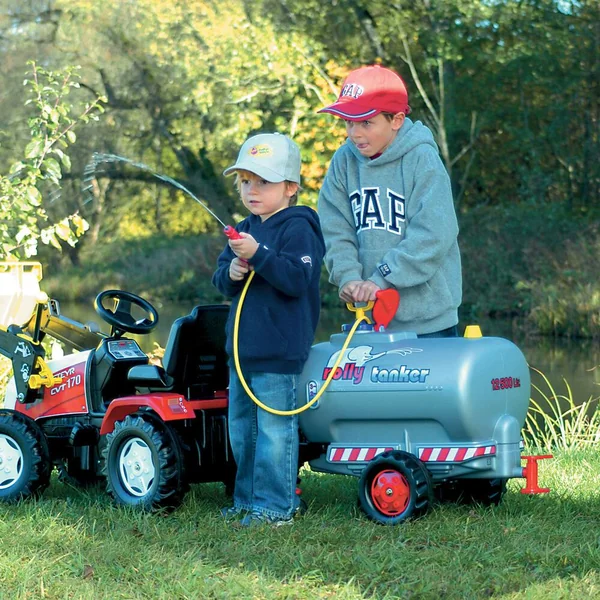 Remorque citerne à eau, RollyTanker, pour enfants à partir de 3 ans. Grande citerne stable à un essieu pouvant être complètement remplie d’eau avec robinet de sortie + pompe et arroseur. Asperge à une distance d’environ 5 m. Roue d’appui avec manivelle au timon. De couleur argent. Remorque citerne à eau stable, pour enfants de 3 à 10 ans, avec robinet de sortie, pompe et arroseur. Projection jusqu’à 5 m. Capacité jusqu’à 30 litres. Roue d’appui avec manivelle au timon. Arrose le jardin ou les copains !