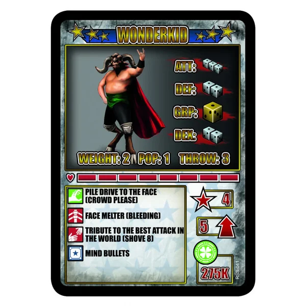 Les deux « Crowd Pleasers » donnent à chaque lutteur ami un compteur de +1AP, ce qui est un énorme bonus pour toute équipe. Et vu que le »Pile Drive To The Face Grapple Ability « de Wonderkid a la règle spéciale « Crowd Please », cela va arriver souvent ! Nasty Goat n’est pas en reste, puisque « Quitter » renverse ses adversaires et les ramasse aussi !