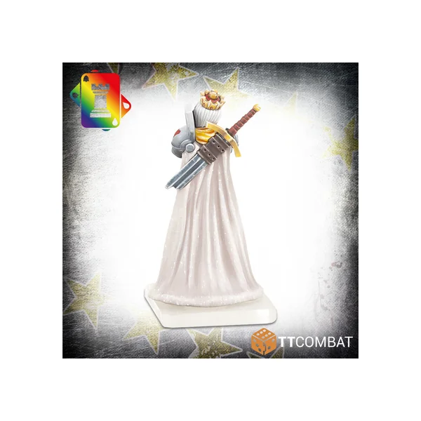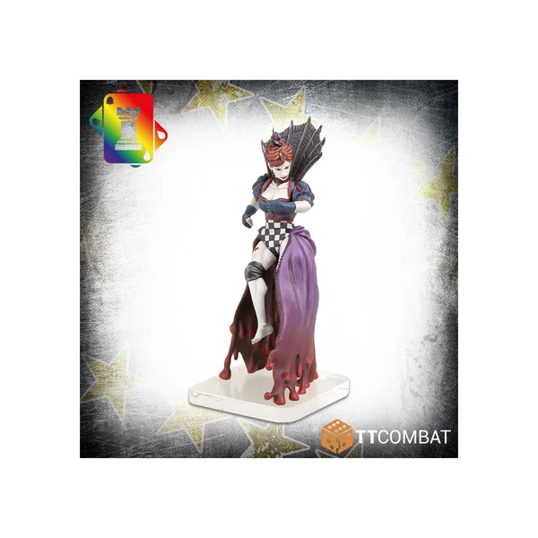 - Queen of Hearts, comme son partenaire, n’a qu’un seul point de Mouvement. Cependant, contrairement au Roi, elle traverse le ring en ligne droite, ne s’arrêtant que lorsqu’un malheureux ose se mettre sur son chemin. Elle utilise sa prise, Exsanguination, pour infliger des dégâts, retirer des PA à ses adversaires et surtout leur coller un marqueur Saignement. Elle peut ensuite profiter de ce dernier avec Siphon Sanguin pour restaurer son Endurance tout au long du match. Le Flying Neckbreaker est une attaque depuis le coin très solide, avec deux Or et un effet -MP sur la cible.