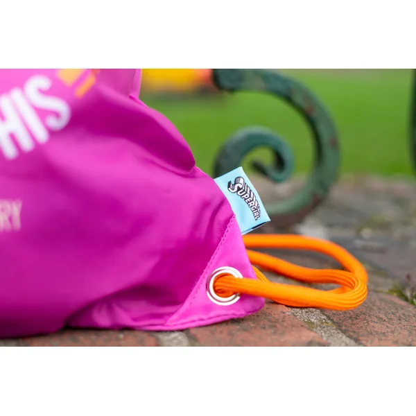 Sac à chaussures en matériau solide et lavable. Fermeture par des cordons solides qui permettent également de le porter sur le dos.