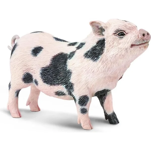 Taille et couleur : Notre modèle de cochon nain, mesurant 5,25 pouces (environ 13,3 cm) de long et 3,25 pouces (environ 8,3 cm) de haut, est légèrement plus grand qu’une canette de soda posée sur le côté. Les cochons nains peuvent avoir de nombreuses couleurs différentes selon leur origine, bien qu’ils soient souvent gris clair ou blancs avec des parties noires.