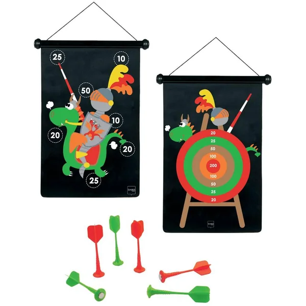 Double face pour plus de jeu ! Livré avec 6 fléchettes en plastique avec embout métallique et un tube de rangement.