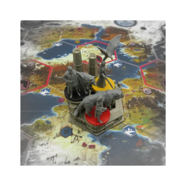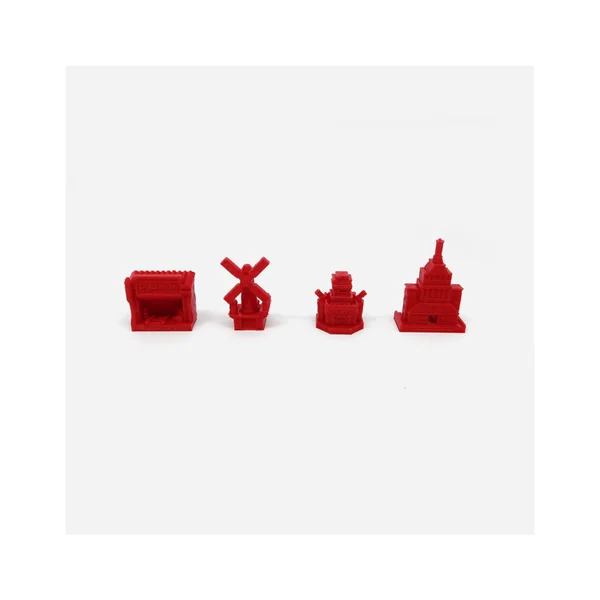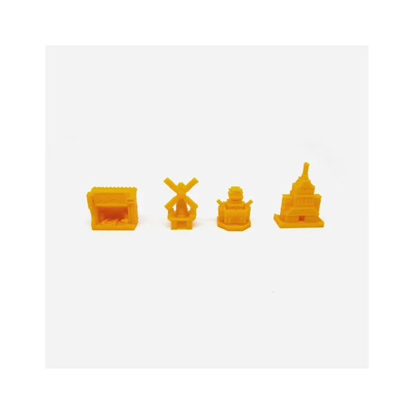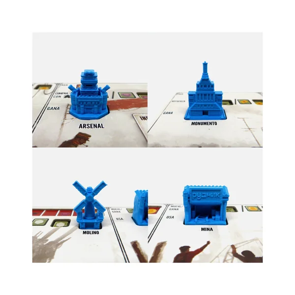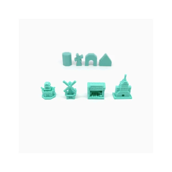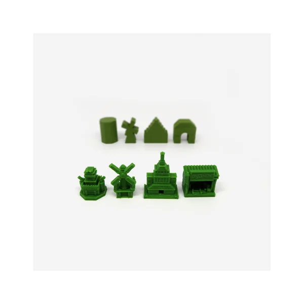 Les bâtiments ont les mêmes dimensions que les pions de base afin de les remplacer sans gêne aucune.
