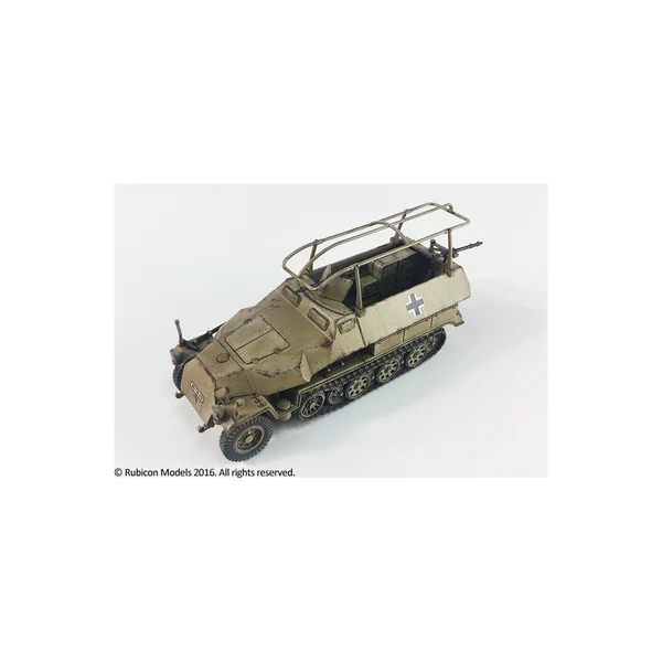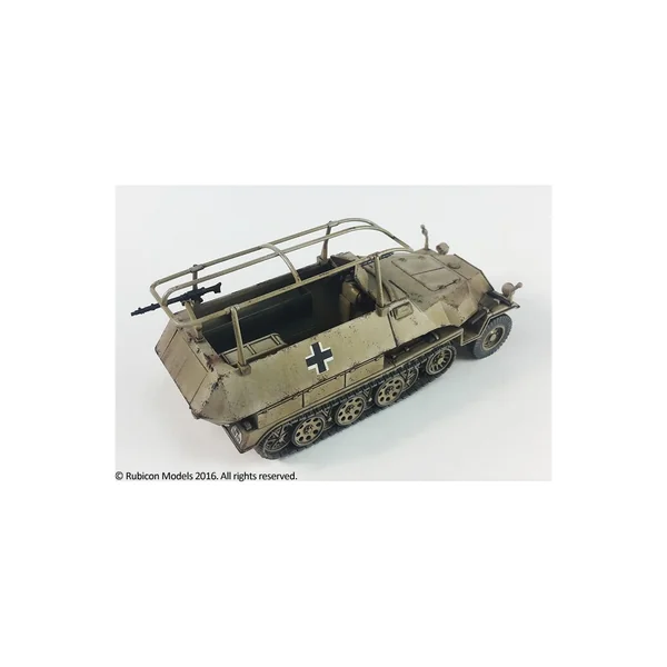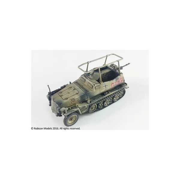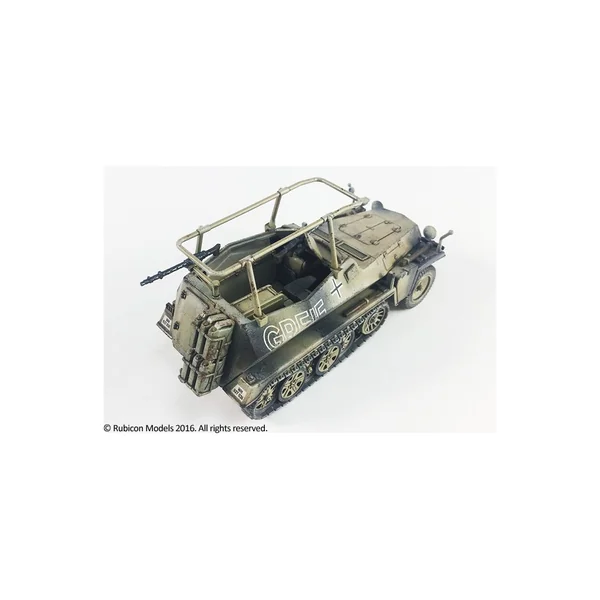 Ce kit, à utiliser impérativement avec une boîte de SdKfz 250 ou 251 de Rubicon Models (ref. RU280018 ou RU280031 ou RU280032 ou RU280038) permet de transformer le halftrack en véhicule de communication et de commandement.