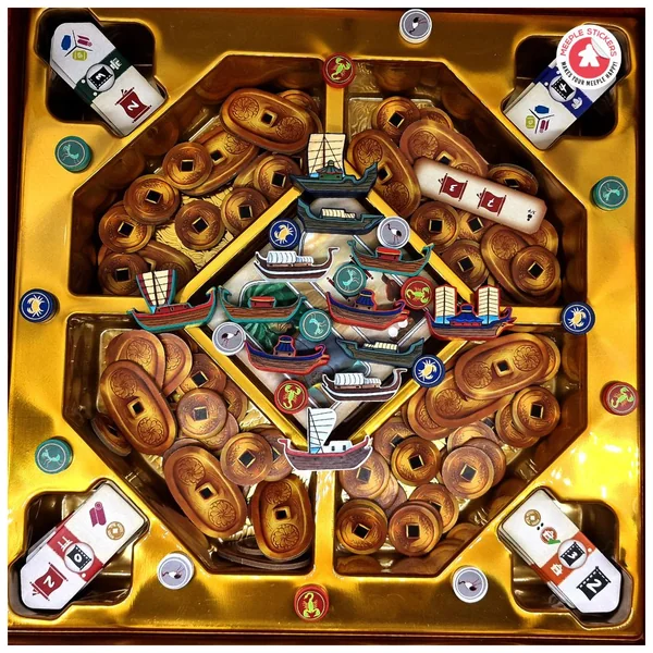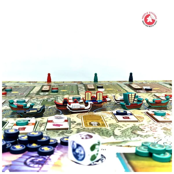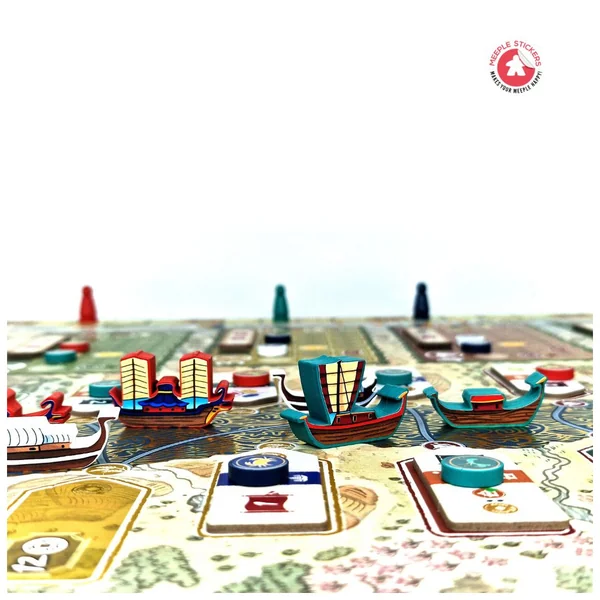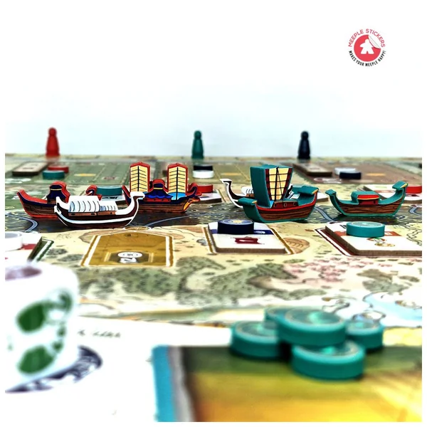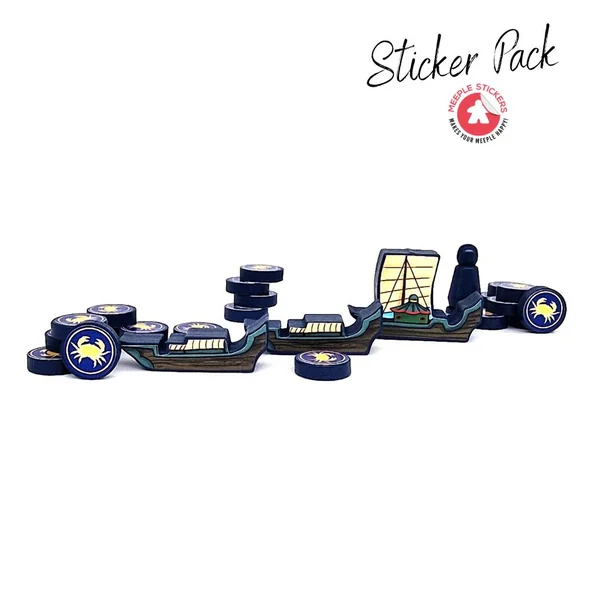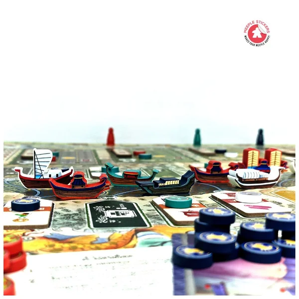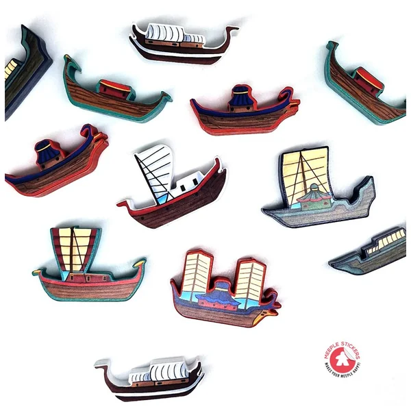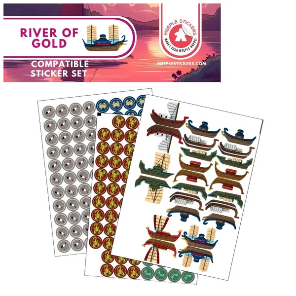 Découvrez ce set d’autocollants que nous avons créé pour l’incroyable jeu de société River of Gold ! Dans ce jeu, vous incarnez des marchands de rivière alliés à différents clans de samouraïs, cherchant à exploiter le fleuve pour obtenir richesse et gloire. Et pour rendre ce projet encore plus immersif, vous pouvez désormais utiliser nos autocollants personnalisés pour décorer vos meeples, faisant ainsi briller de mille feux ces magnifiques bateaux !