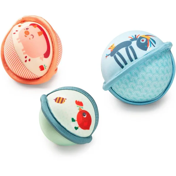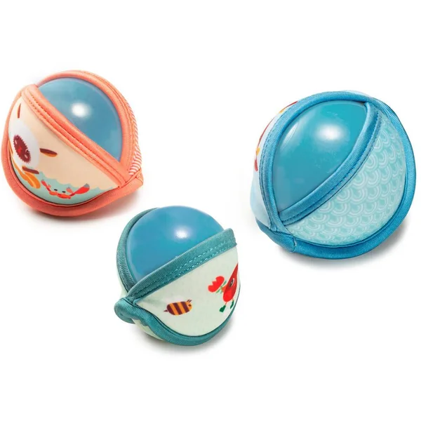 Ces 3 balles de bain flottantes en différentes dimensions représentent des animaux de la ferme. Vos petits poissons s’amuseront à lancer et rattraper les balles dans l’eau et exerceront leur aptitude à manipuler une balle, mais aussi leur coordination main-œil. Amusement garanti ! Housse amovible pour faciliter le lavage.