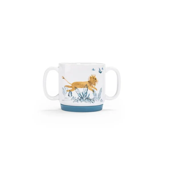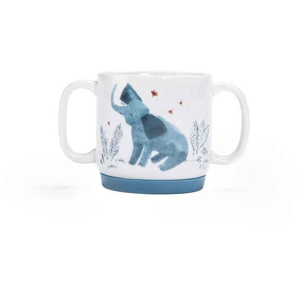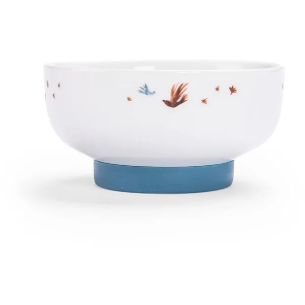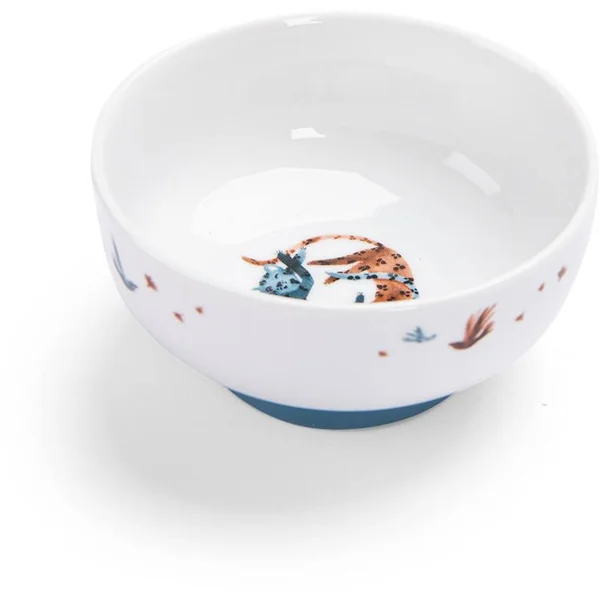 Coffret vaisselle en porcelaine, tendrement illustré pour manger comme les grands. Comprend bol, tasse à anses et assiette avec chaussette antidérapante en silicone amovible qui adhère sur les surfaces lisses et empêche de glisser ! Passe au lave-vaisselle.