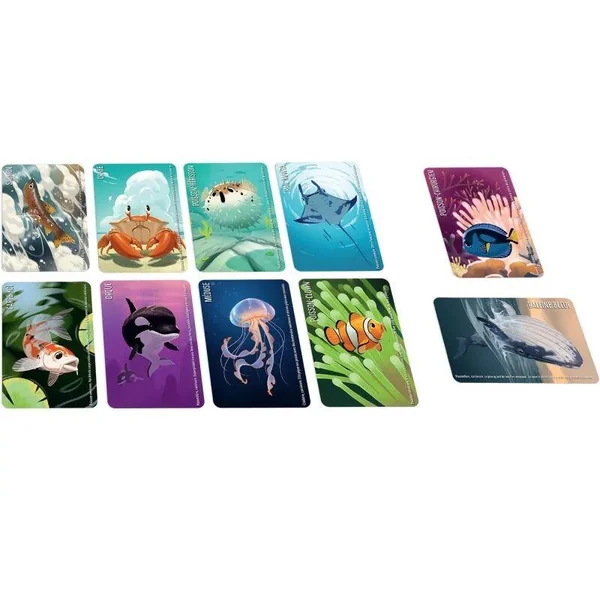 Similo Animaux Aquatiques est un jeu de déduction coopératif dans lequel les joueurs doivent retrouver l’animal secret du Narrateur à l’aide d’autres animaux. Similitudes, différences, à vous de deviner ce que le Narrateur essaye de vous indiquer. Est-ce un poisson ou mammifère ? Un carnivore ? Un animal de grande taille ? Autant de questions que vous devrez vous poser pour remporter tous ensemble la victoire!