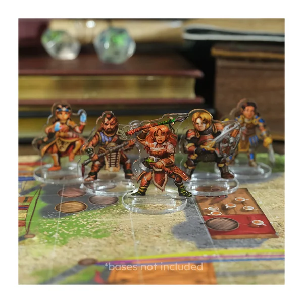 16 petites figurines : Barbares, Guerriers, Moines, Paladins, Rôdeurs et Voleurs, hommes et femmes. Tonneau de bière, Marmite, Baril de poudre, Chariot à roues.