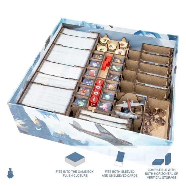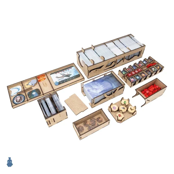 - 4 porte-cartes avec emplacements dédiés et séparateurs amovibles, conçus pour ranger chaque deck actif/inactif/écarté.