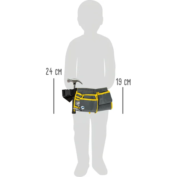 Avec cette ceinture à outils robuste, les enfants auront toujours leurs outils à portée de main. Que ce soit un marteau de charpentier, un tournevis plat ou cruciforme Phillips, une équerre en métal, des lunettes de protection, des gants de travail en PU, des pinces à ressort et des clous, un crayon et un taille-crayon ou un mètre ruban. Cet ensemble complet est un must pour tout jeune bricoleur ou bricoleuse.