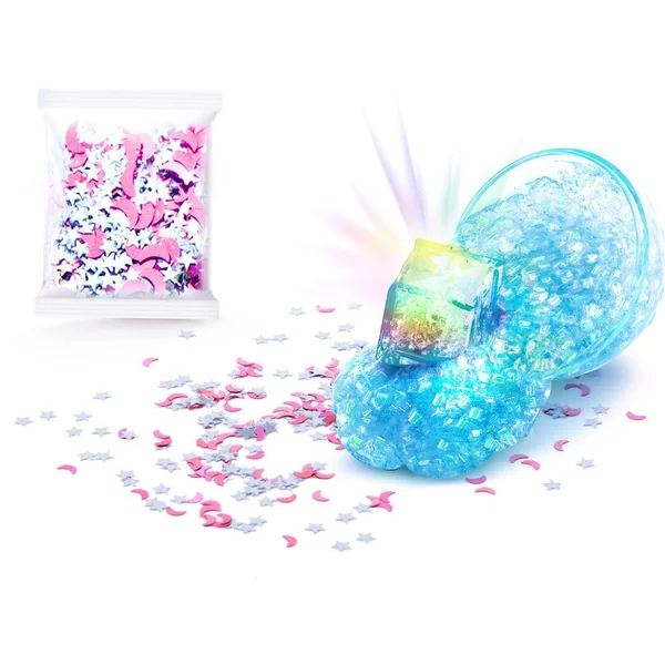 Amuse-toi avec ta slime transparente et colorée ! Ajoute des décorations et la lumière pour un effet incroyable !