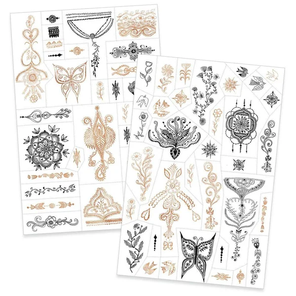 Deux plahes de tatouages temporaires aux arabesques délicates et scintillantes pour orner ses mains de véritables bijoux de peau ! Faciles à utiliser, ils sont prédécoupés et s’appliquent avec un peu d’eau. Testés dermatologiquement.