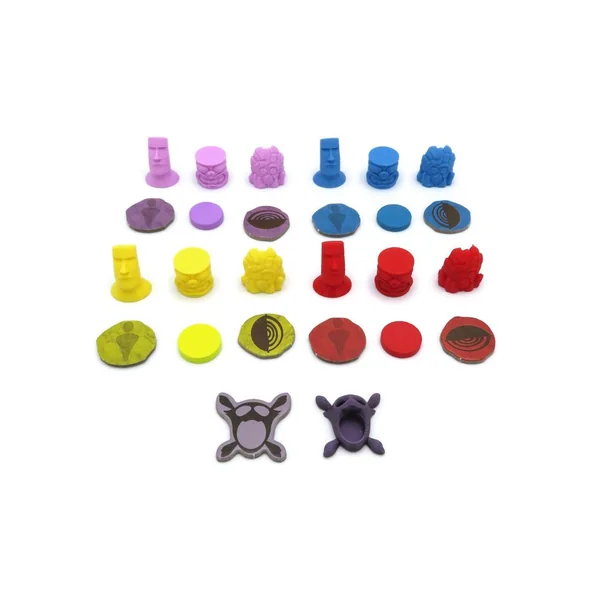 • 24 jetons Effet de tour (3 têtes sculptées et 3 masques de pierre de chaque couleur)